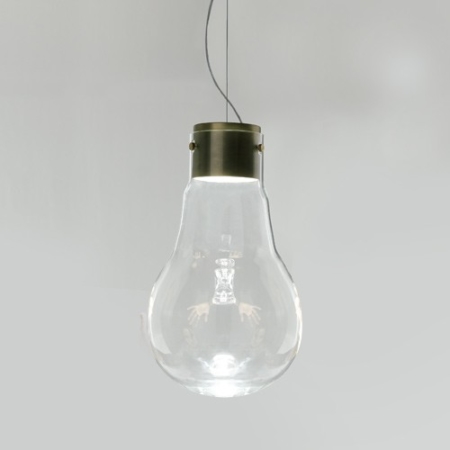 Lampada da tavolo con base e stelo in vetro trasparente e diffusore in vetro opalino.