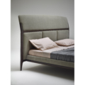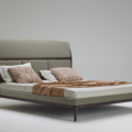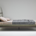 Nato da un’idea di Roberto Lazzeroni, Tomorrow Morning è un letto realizzato in massello di noce americano, caratterizzato da una testiera alta e più larga rispetto al piano del letto. Lo schienale è pensato per la lettura, infatti si inclina sulla parte superiore per facilitare l’appoggio dei guanciali. Un traverso in legno sagomato segna il confine con la sezione inferiore suddivisa in tre parti imbottite. La struttura è sorretta da quattro gambe fini che danno all’insieme un senso di leggerezza, nonostante le dimensioni importanti. In Tomorrow Morning il design va di pari passo alla versatilità: Ii piano letto ha una base sollevata da terra in massello contornata da un ring imbottito che dà la possibilità, oltre alla classica rete in multistrato impiallacciato, di utilizzare quella a doghe di faggio. Le parti imbottite possono essere rivestite in tessuto o pelle.