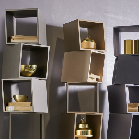 La libreria componibile a muro è composta da moduli di diverse dimensioni, accostabili sia in orizzontale che in verticale, secondo le tue esigenze. Puoi usare un unico modulo o formare pareti infinite.
