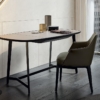 Mathieu è uno scrittoio contemporaneo dalla silhouette slanciata e dai profili delicati. Il piano, con cornice in essenza e inserto in cuoio, disegna curve delicate che addolciscono le linee decise della struttura, in metallo verniciato. Eleganti e discreti gli accessori opzionali – il piccolo cassetto sottopiano e lo specchio – che lo trasformano in un complemento perfetto anche per la zona notte.